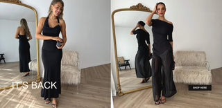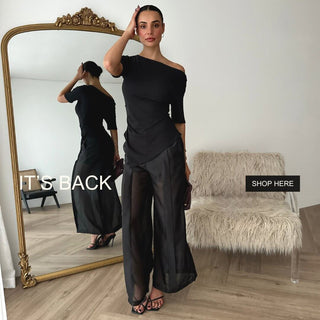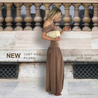 I waited for this dress to come back into stock, and it was worth the wait. The top is made from cotton and is quiet stretchy. Love the off the shoulder detail and the V detail at the hipline. The bottom of the dress is a silky fabric with