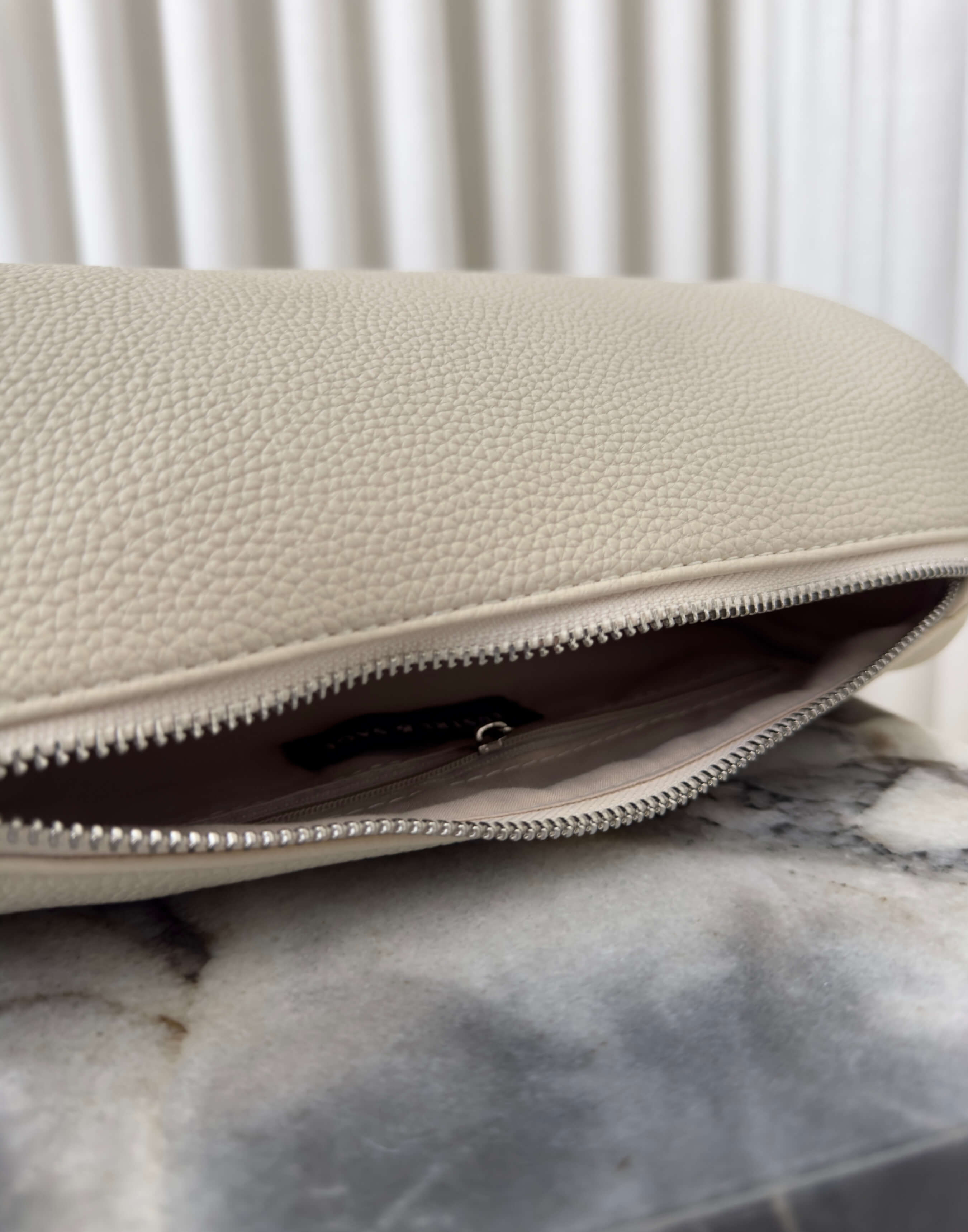 Light, tidy and ready for a full day out. The Danes is a shoulder bag in ivory with a compact interior that fits your keys, mobile, lip combo and wallet, so the small stuff stays sorted. Pair it with the Emery stripe dress and finish with brown heels for a sharp, light toned look that moves neatly from lunch to later. The clean colour plays well with just about anything, and the shape keeps your line tidy while you get on with the fun part.
