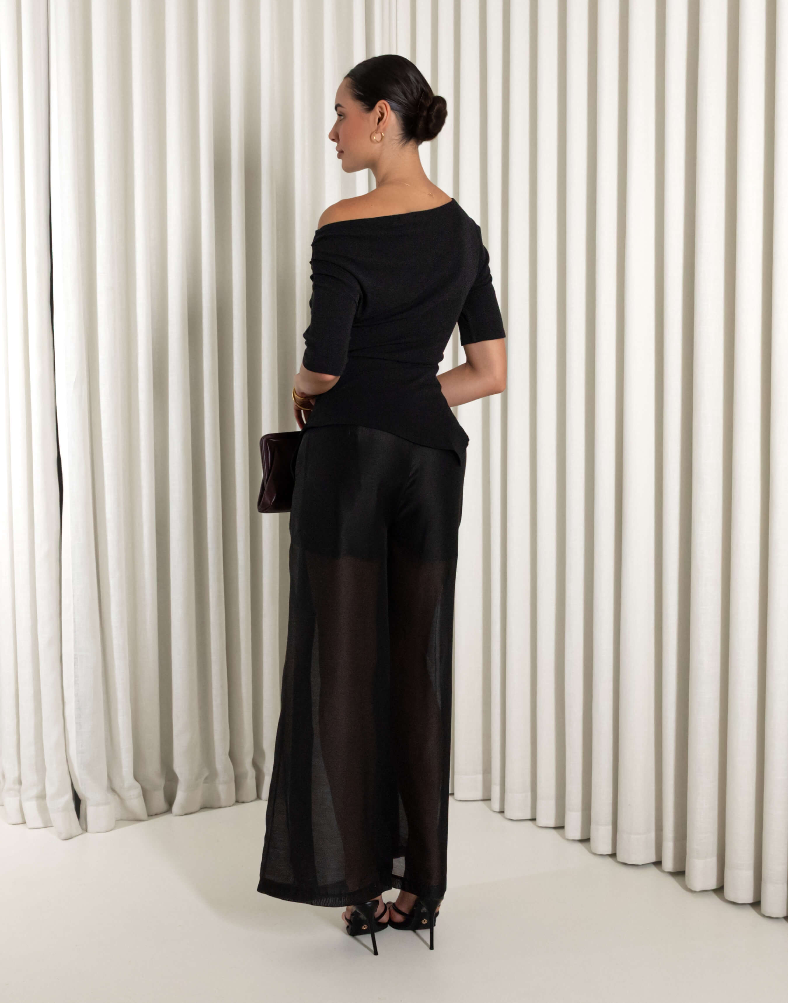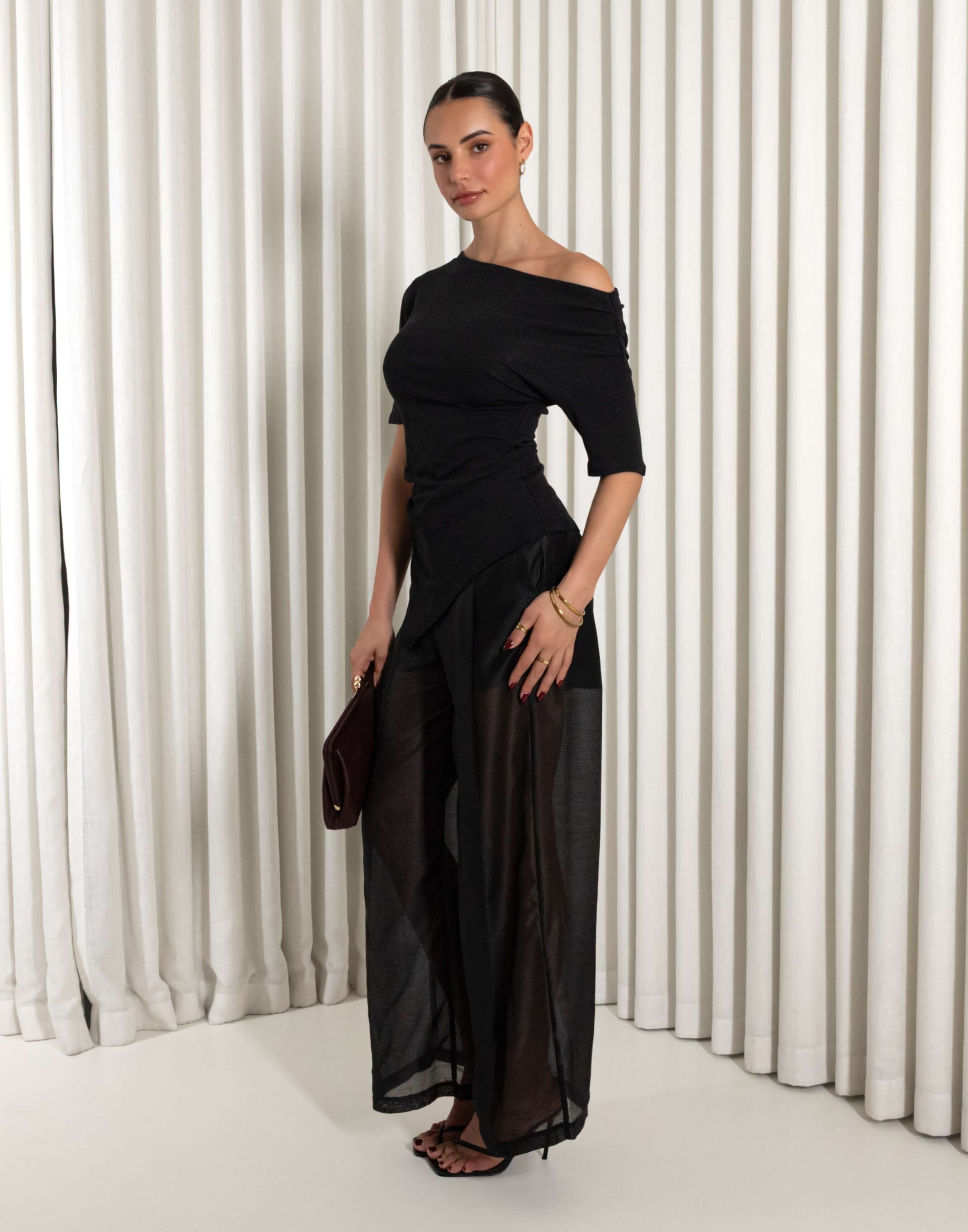 After dark plans ready, Jase turns up the drama while keeping things wearable. The high waisted cut streamlines your shape, and straight legs finish in sheer organza for a light, leg lengthening effect. A soft viscose weave moves easily, with built in shorts lining for confident coverage. Style with a fitted bodysuit and heels or add a tailored blazer for late dinners.