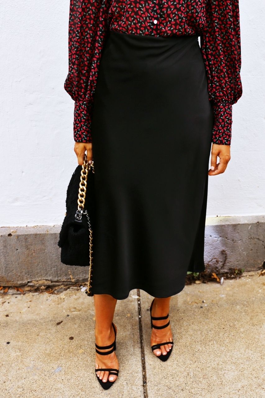 Slip back. Our Sof Slip Skirt features a midi length, a side-seam invisible zipper, no lining, no stretch in the garment and a slightly textured fabric.
