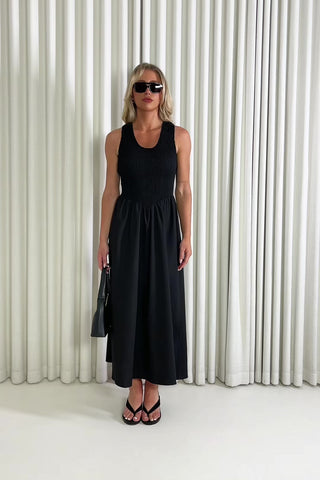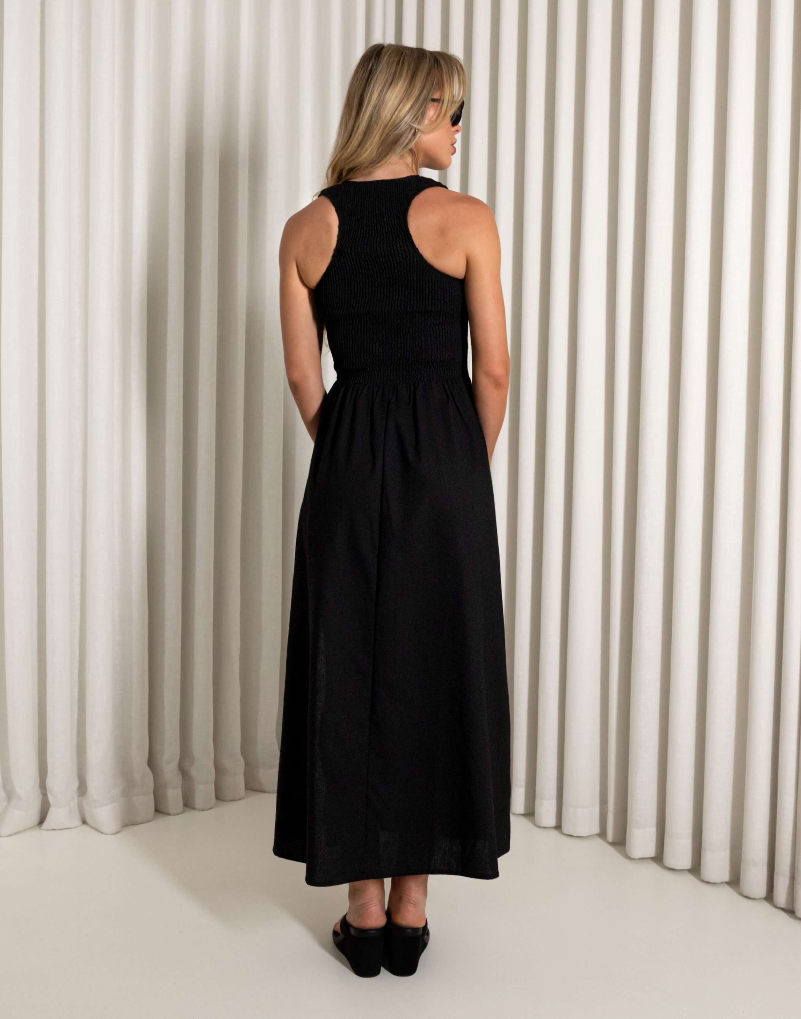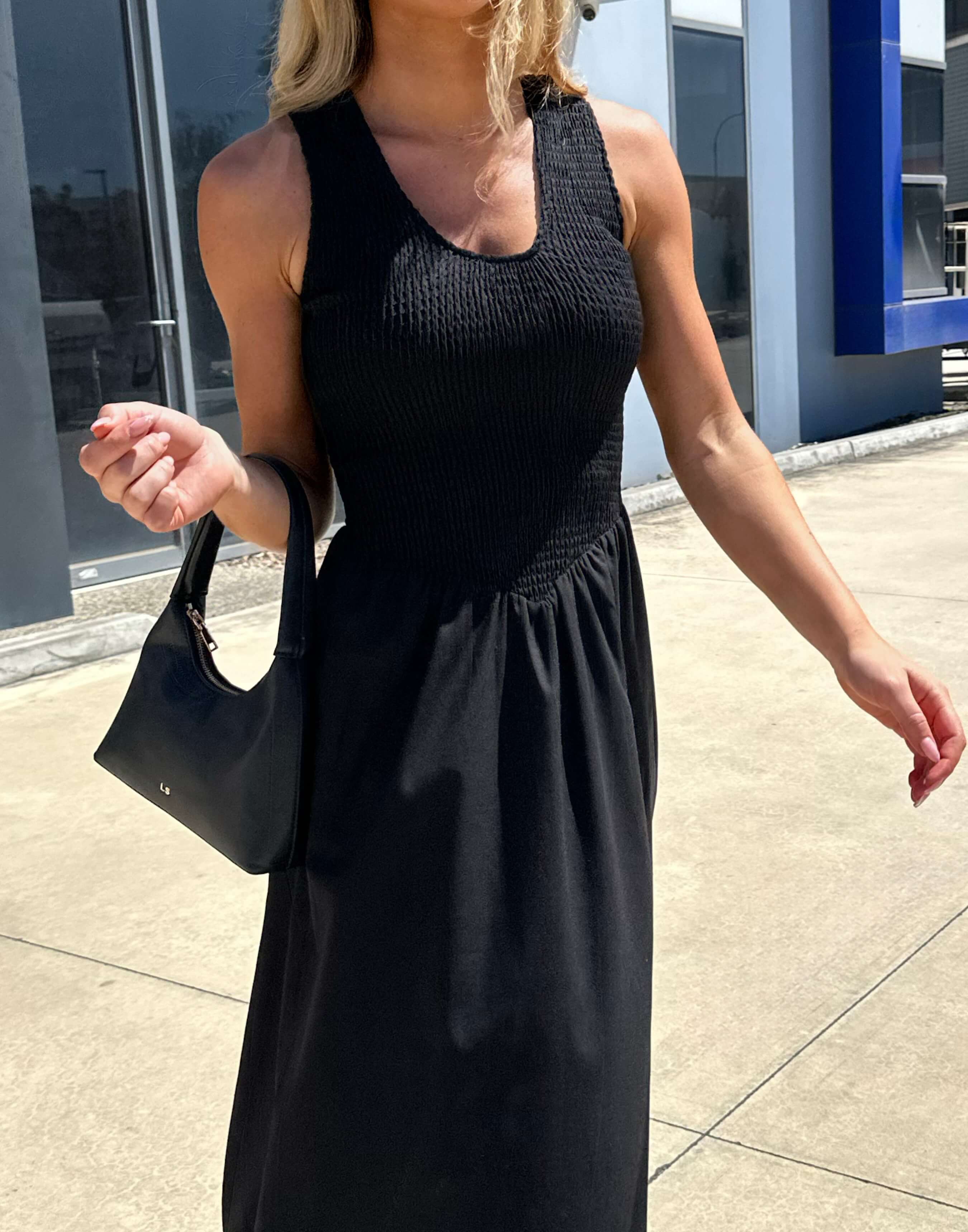 If you want a dress that doesn’t need adjusting all night, this is it. Eddie stretches where you want it to, sits comfortably through the body, and still gives you a nice shape without feeling tight. It’s an easy pick for plans that start casual and end somewhere with a drink menu.