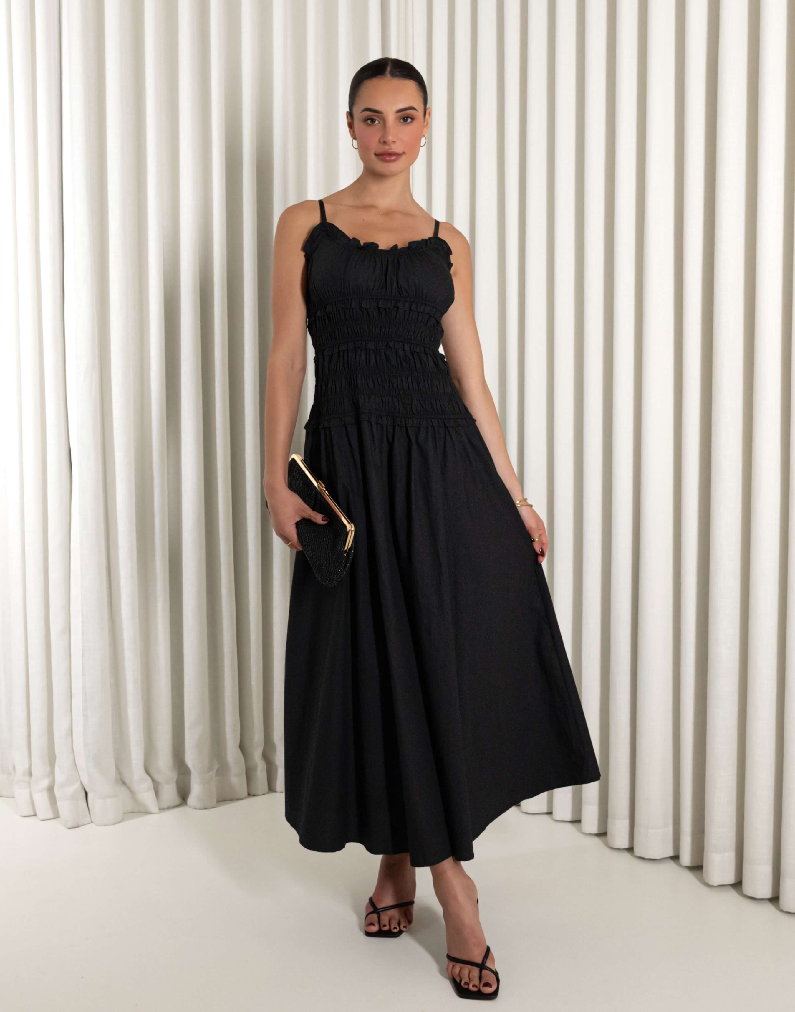 The warm days are here and they're roll into lazy afternoons that have us content and the Nate dress is easy, breathable and effortlessly flattering for those sort of days. The gathered bust and V ruffle neckline bring shape, while 100% cotton with full stretch and adjustable straps keep it comfortable all day. Style it with sandals and a woven tote for weekends or errands.