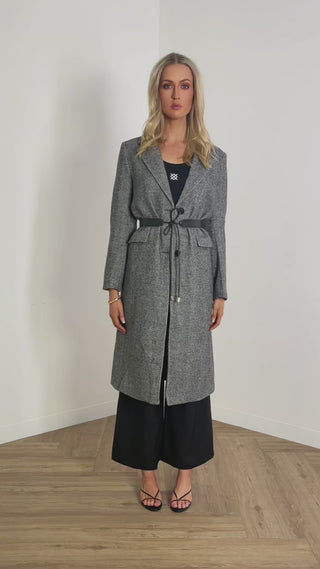 Luca Coat - Wool Blend Longline Belted Coat - Herringbone