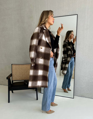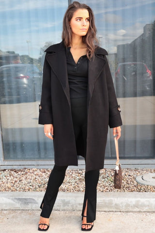 Luca Coat - Wool Blend Longline Belted Coat - Herringbone