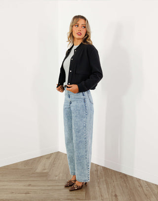 Georgina Trench Jacket - Denim Cropped Trench - Black Denim