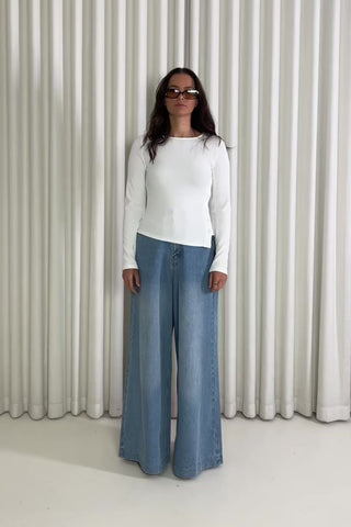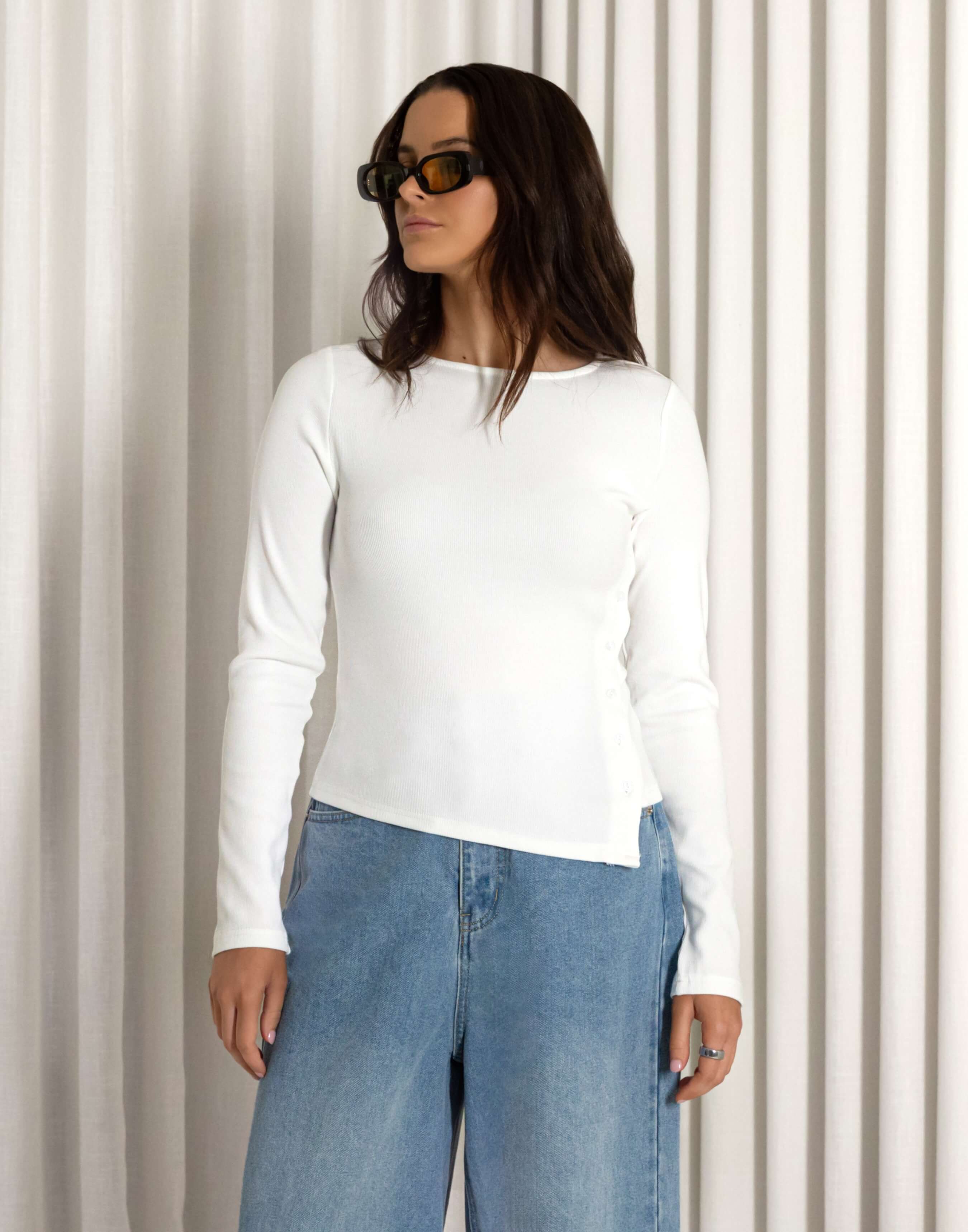 Some tops just make the outfit feel better without you really knowing why. The Lauren top is one of those. It’s simple enough to wear any day, but the side detail gives it that little bit extra so it doesn’t feel boring. Good for work days, lunch plans, or when you’re meeting someone and don’t want to overthink what to wear. We styled it with the Anthony Jeans, but it’ll work with anything you already reach for all the time.