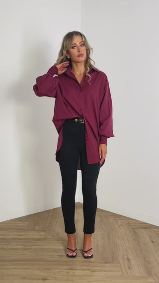Miller Shirt - Cotton Oversized Bubble Sleeve Shirt - Wine
