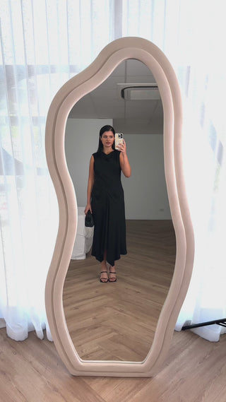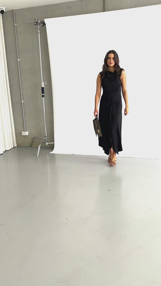 Briony Dress - Gathered Waist High Neck Midi - Black
