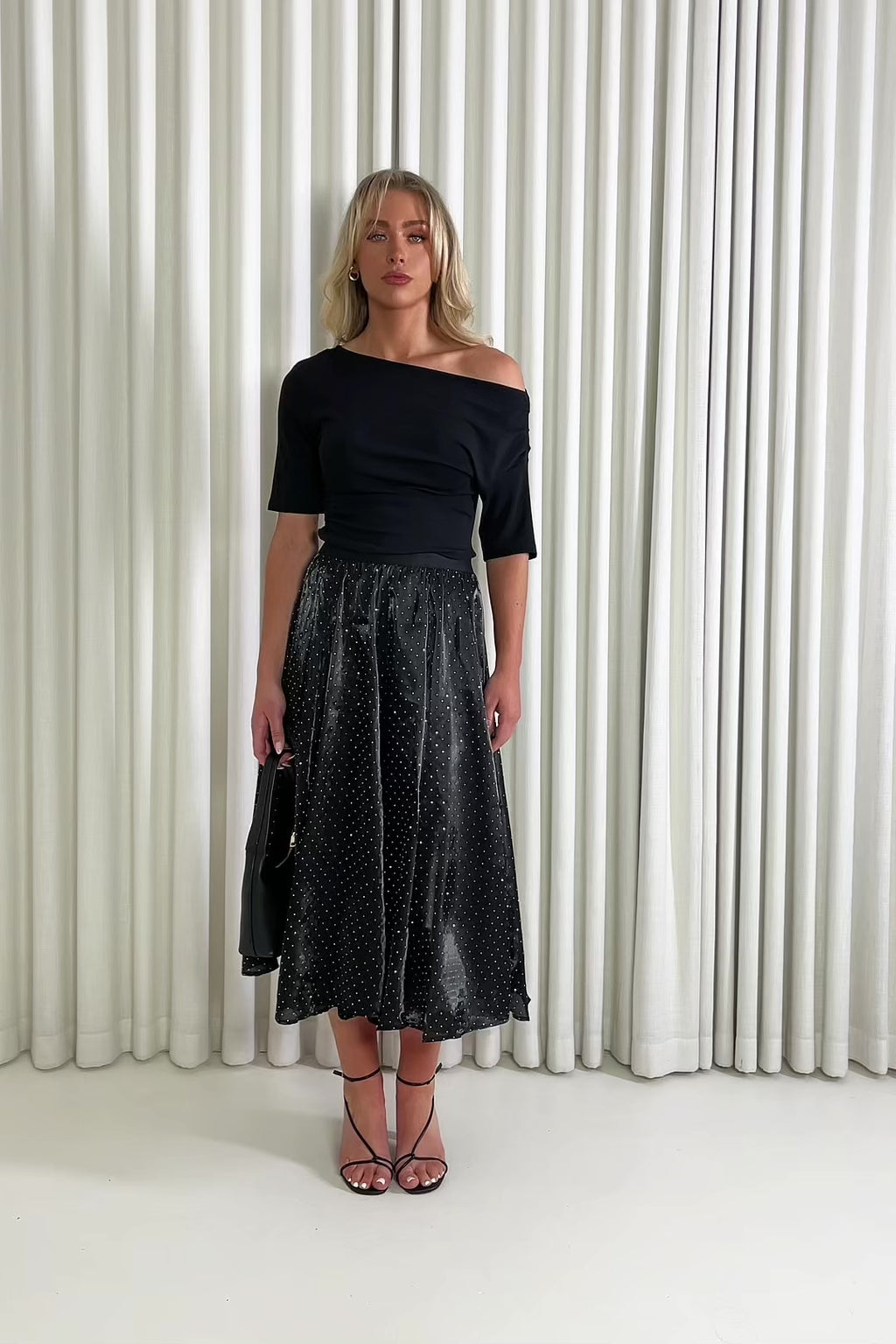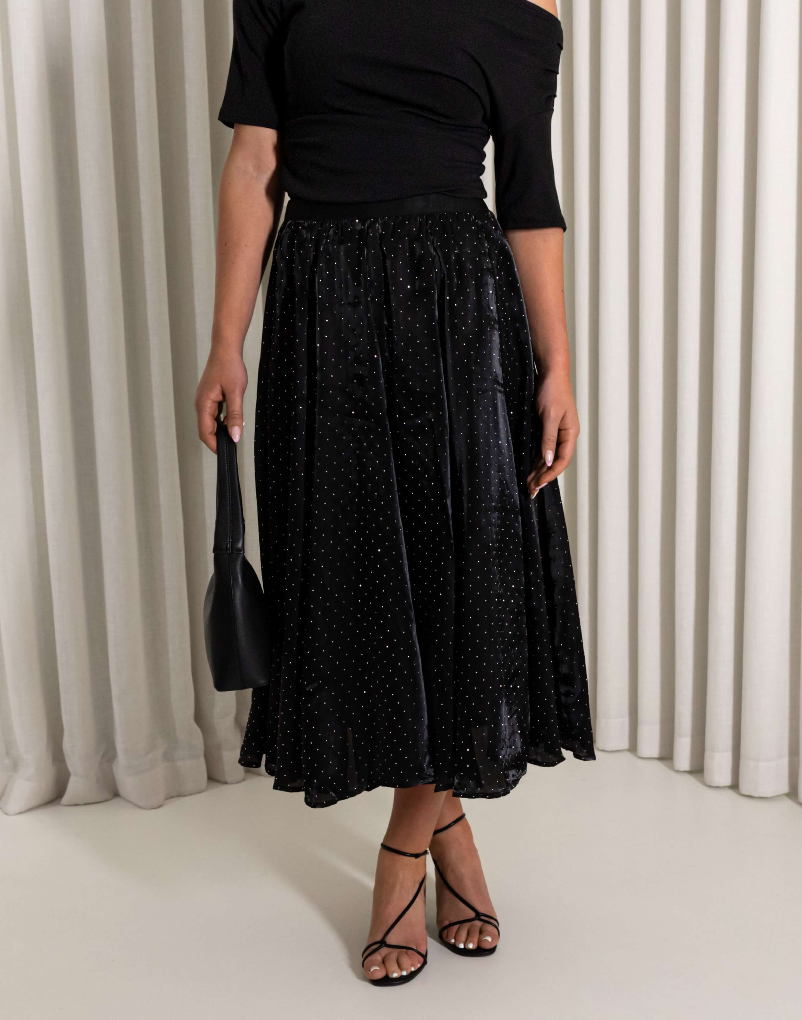 That party you’ve been waiting for is finally here, and the Jacob Skirt is basically made for it! With sparkle that is subtle yet impactful, it stands out in the best way. We styled it here with the Jacob top that sits perfectly tucked and doesn’t take away from the statement of the skirt. Such a winner.