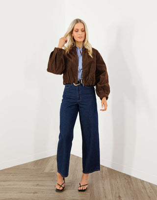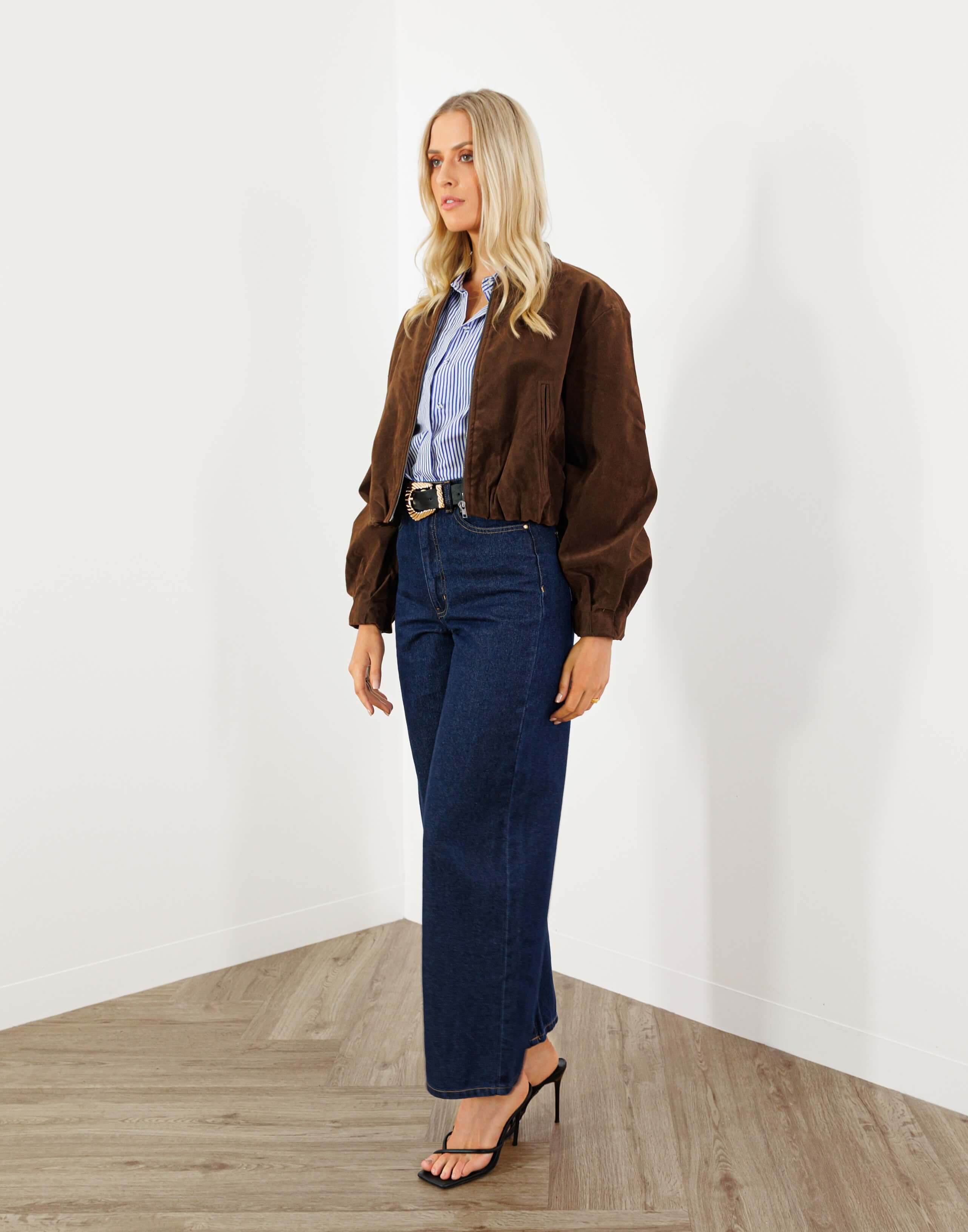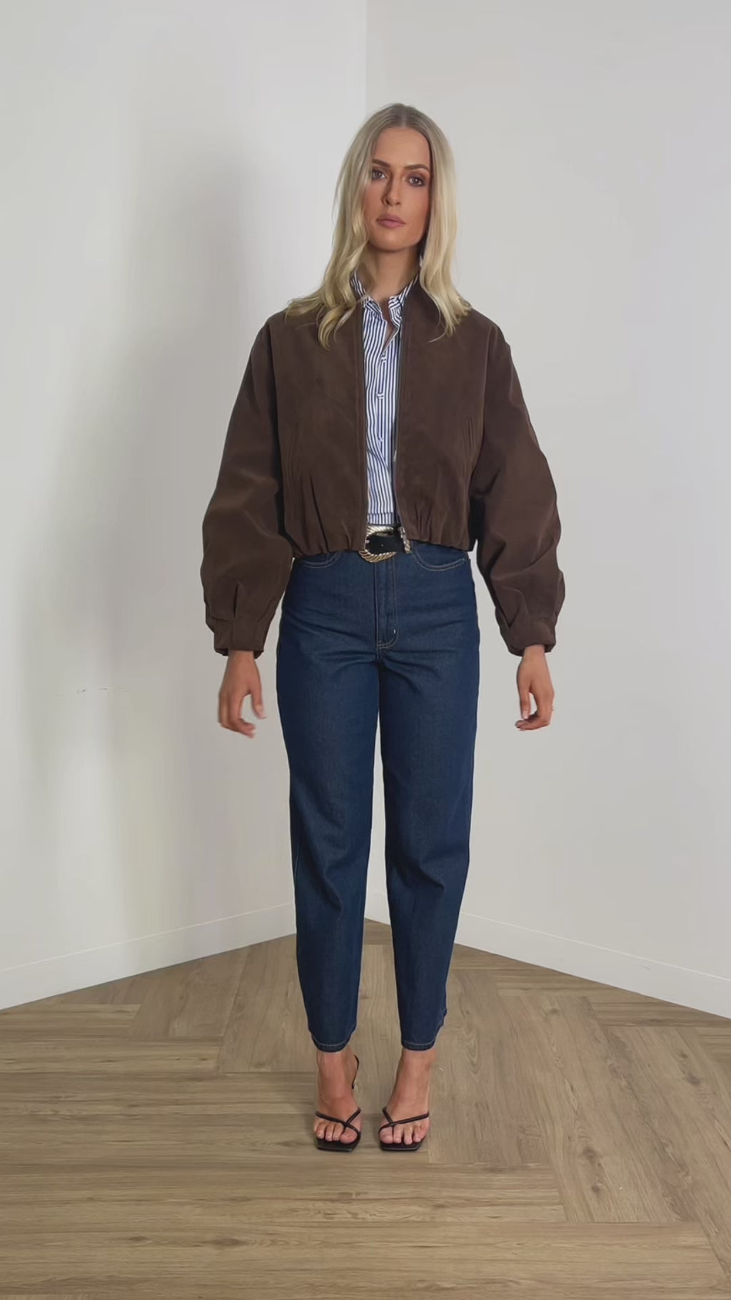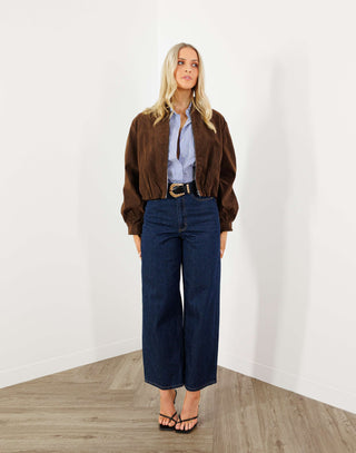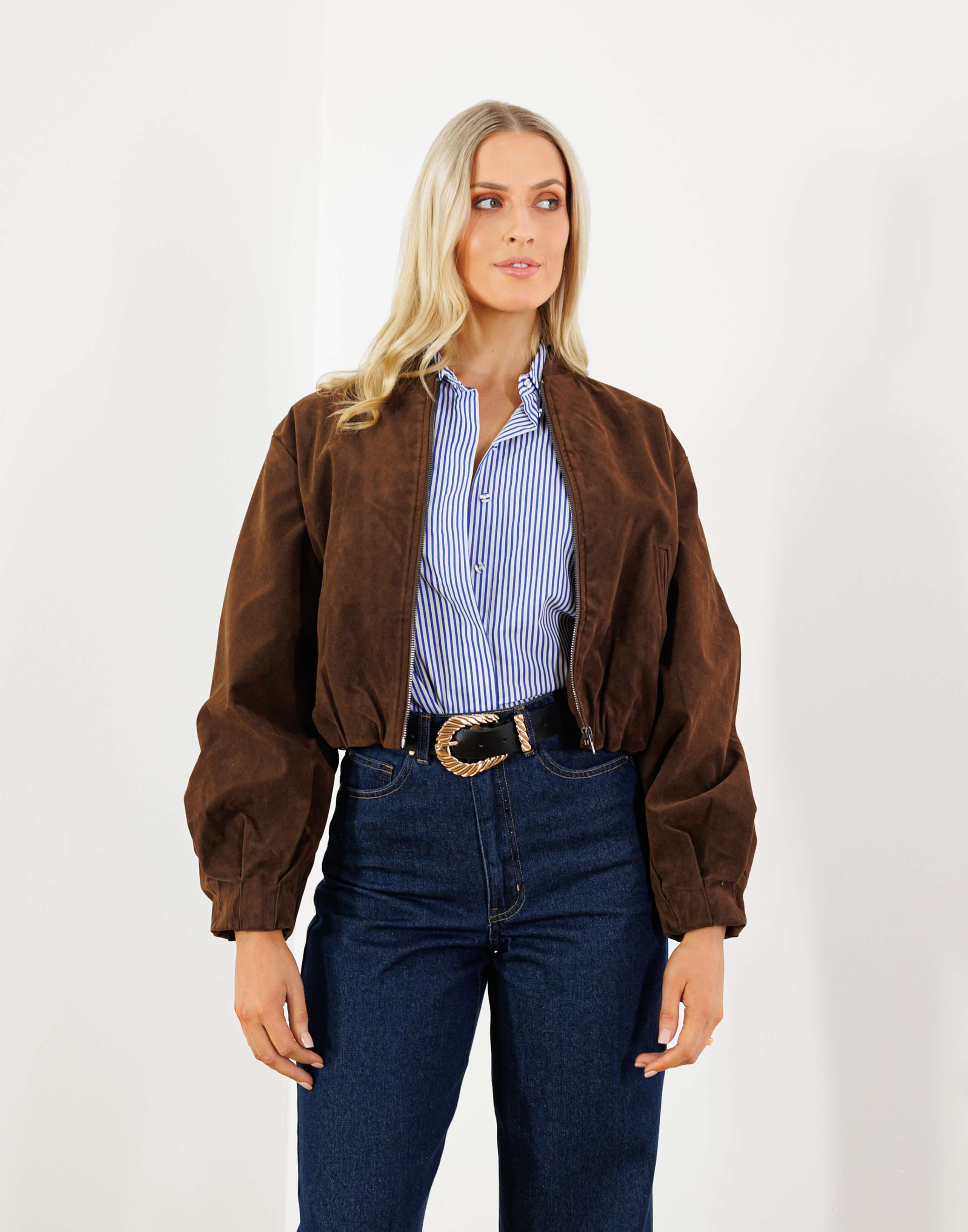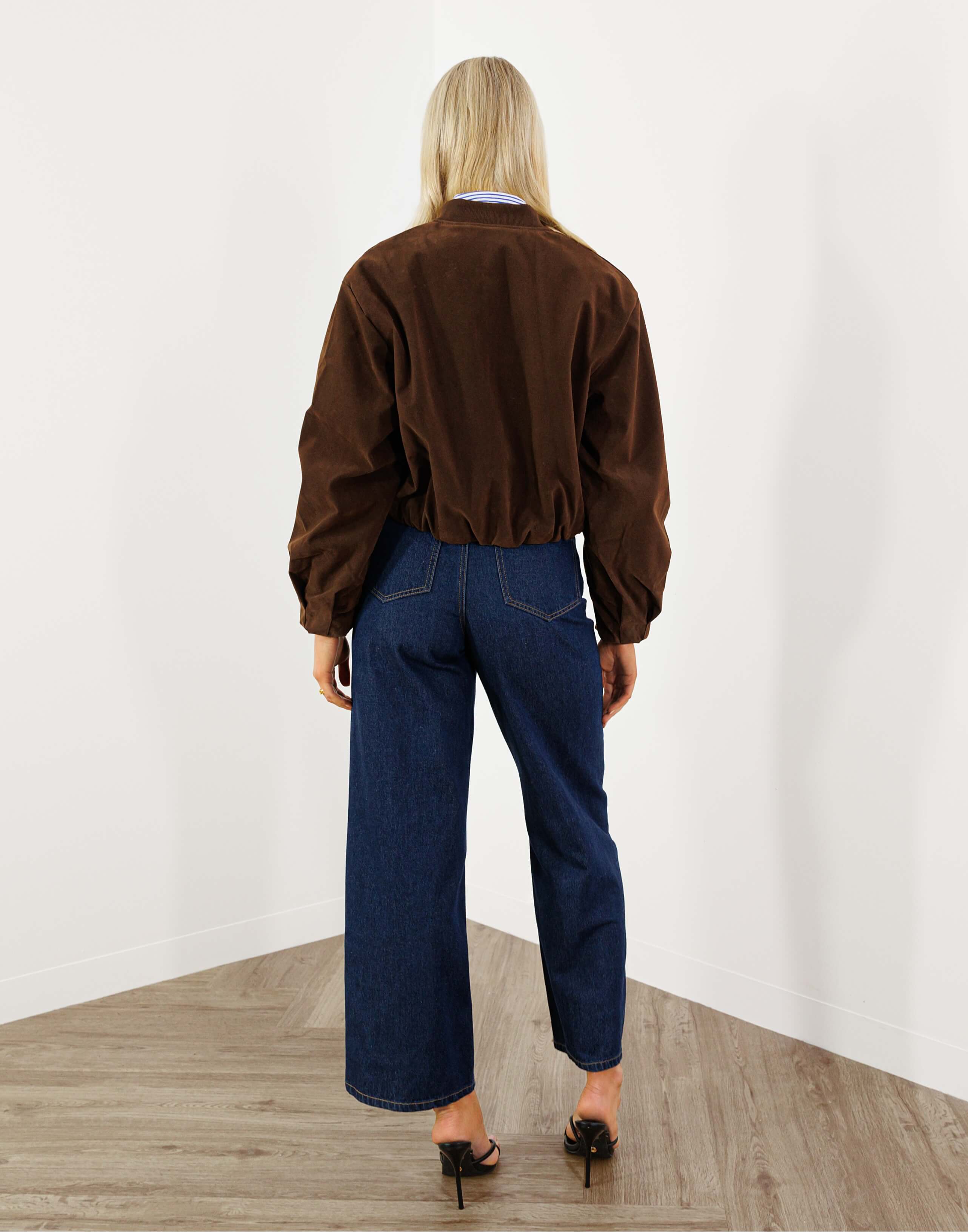Calum Jacket - Faux Suede Bomber Jacket - Brown