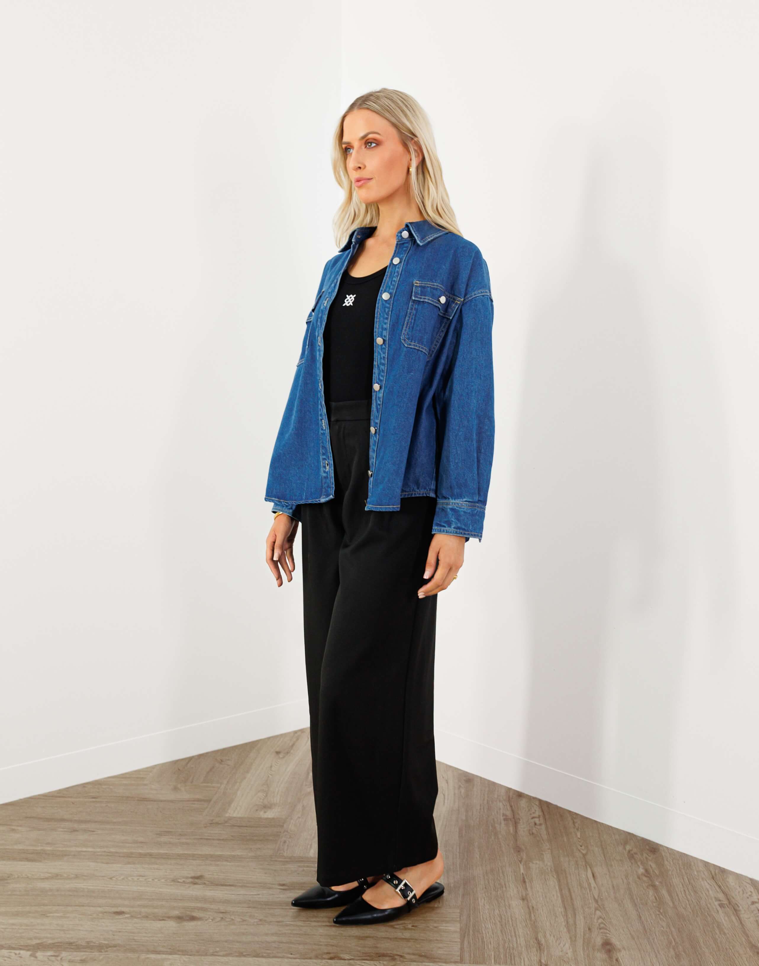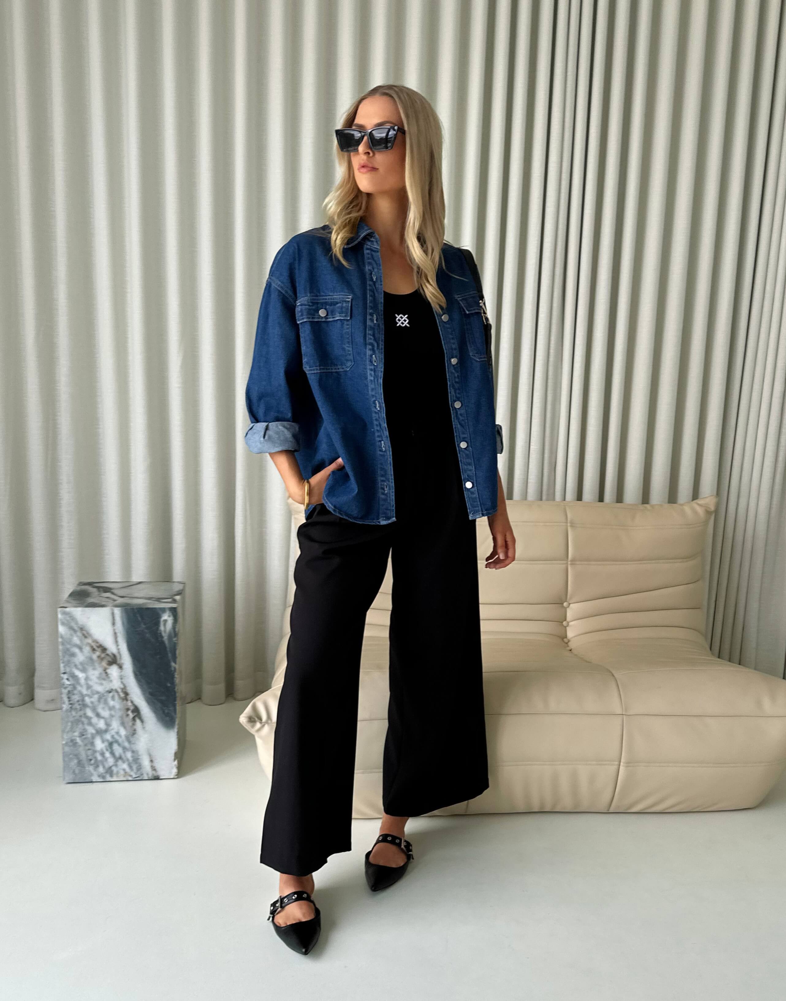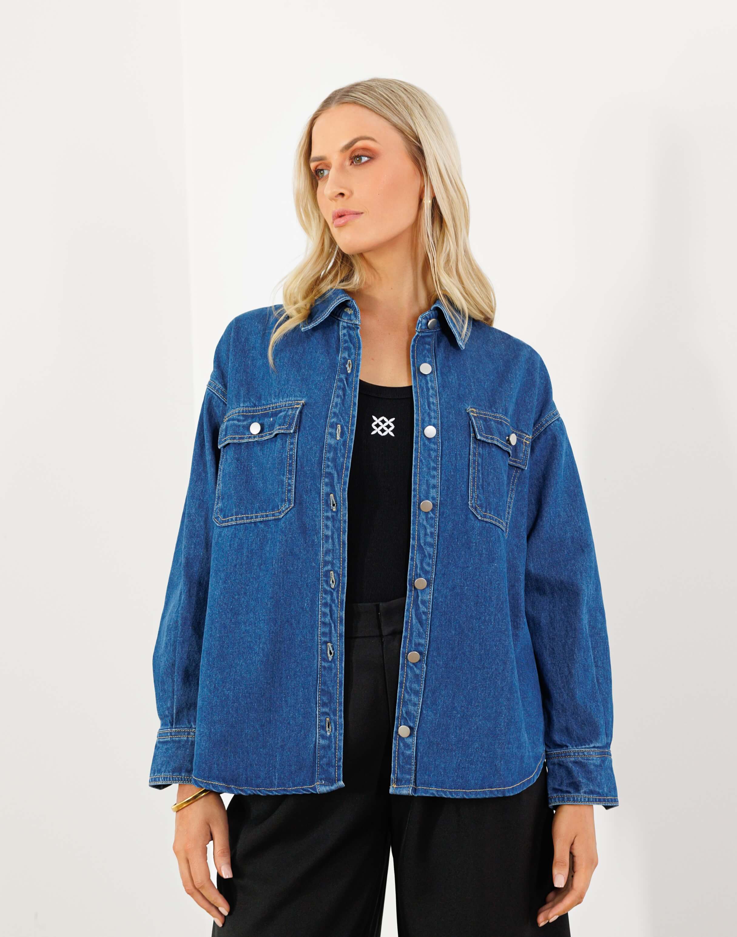 Ray Shirt - Cotton Button Up Relaxed Denim Shirt - Blue