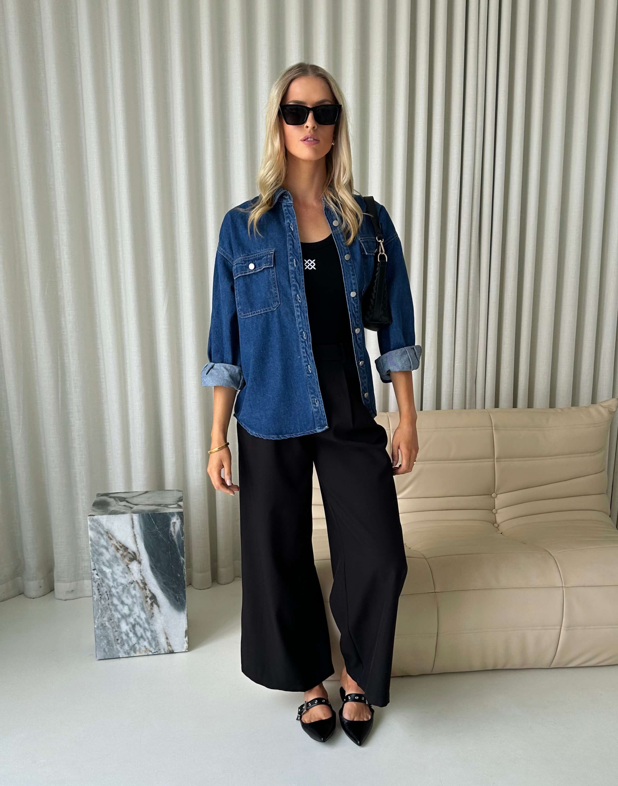 • Collared Neckline: Features a structured collared neckline that brings a clean, classic look.