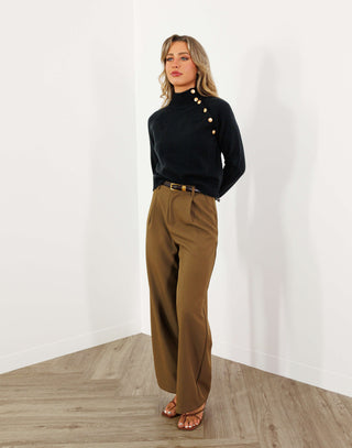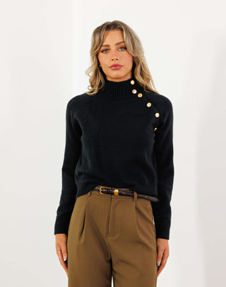 Ciara Top - Fitted Off Asymmetrical Neckline Top - Black