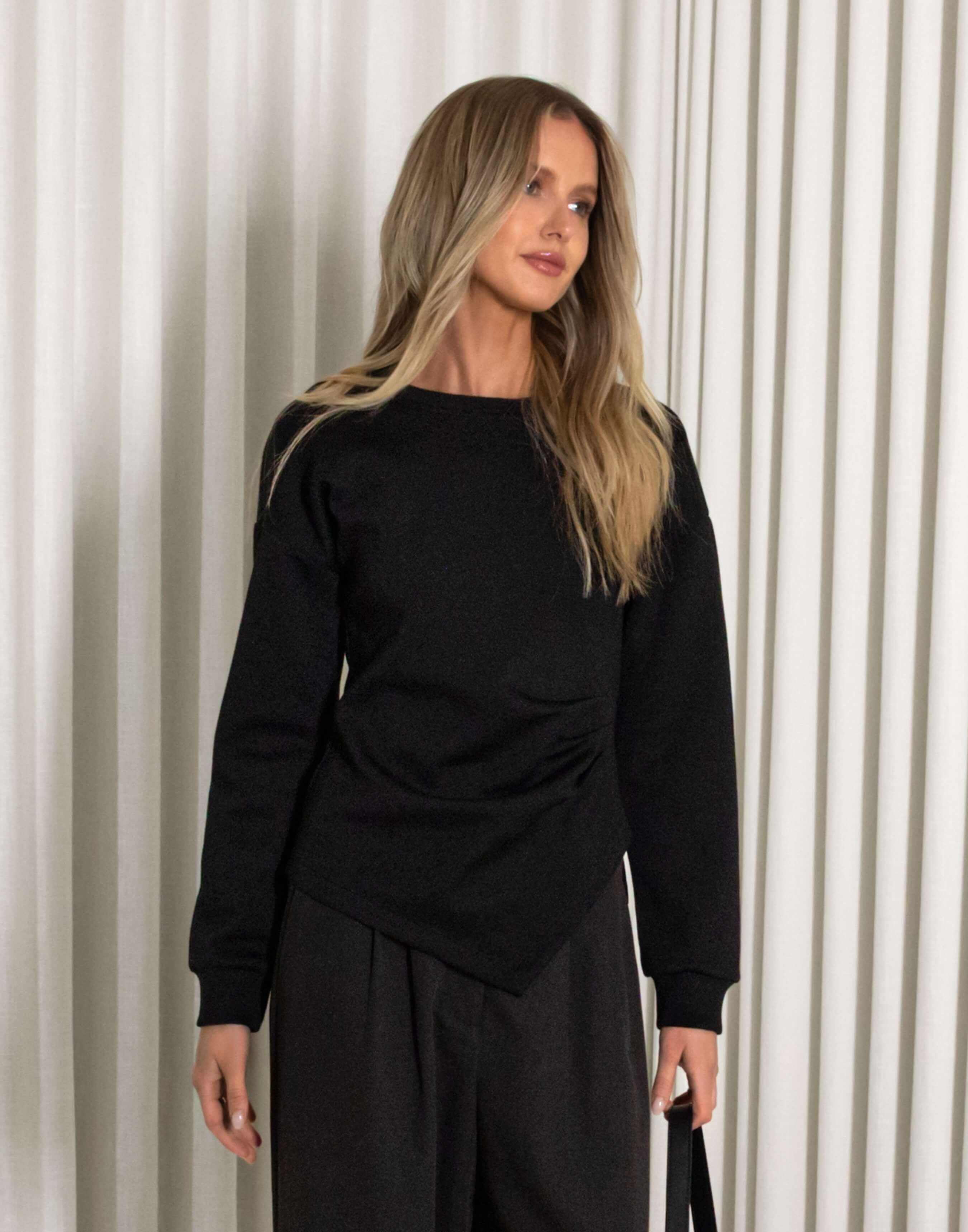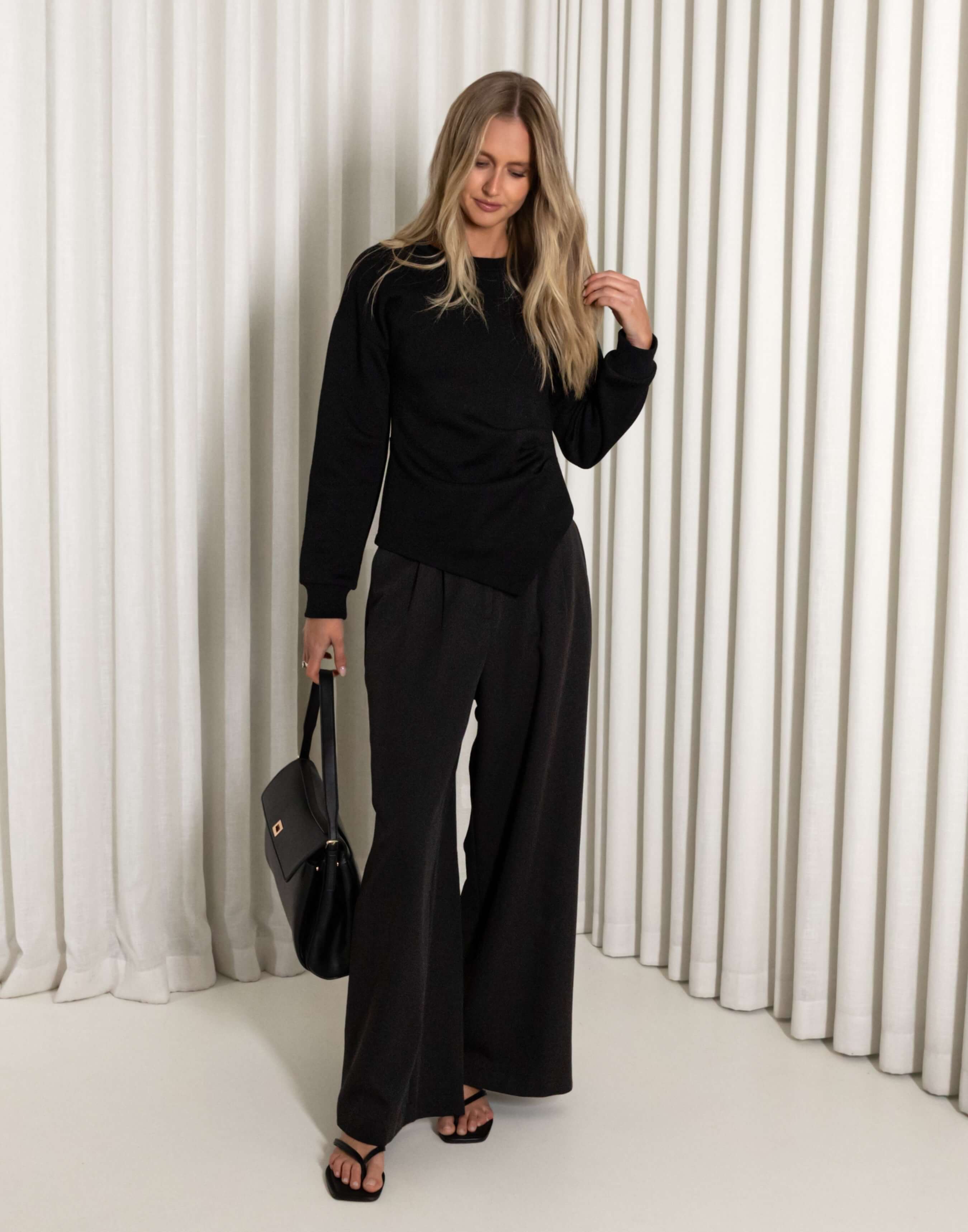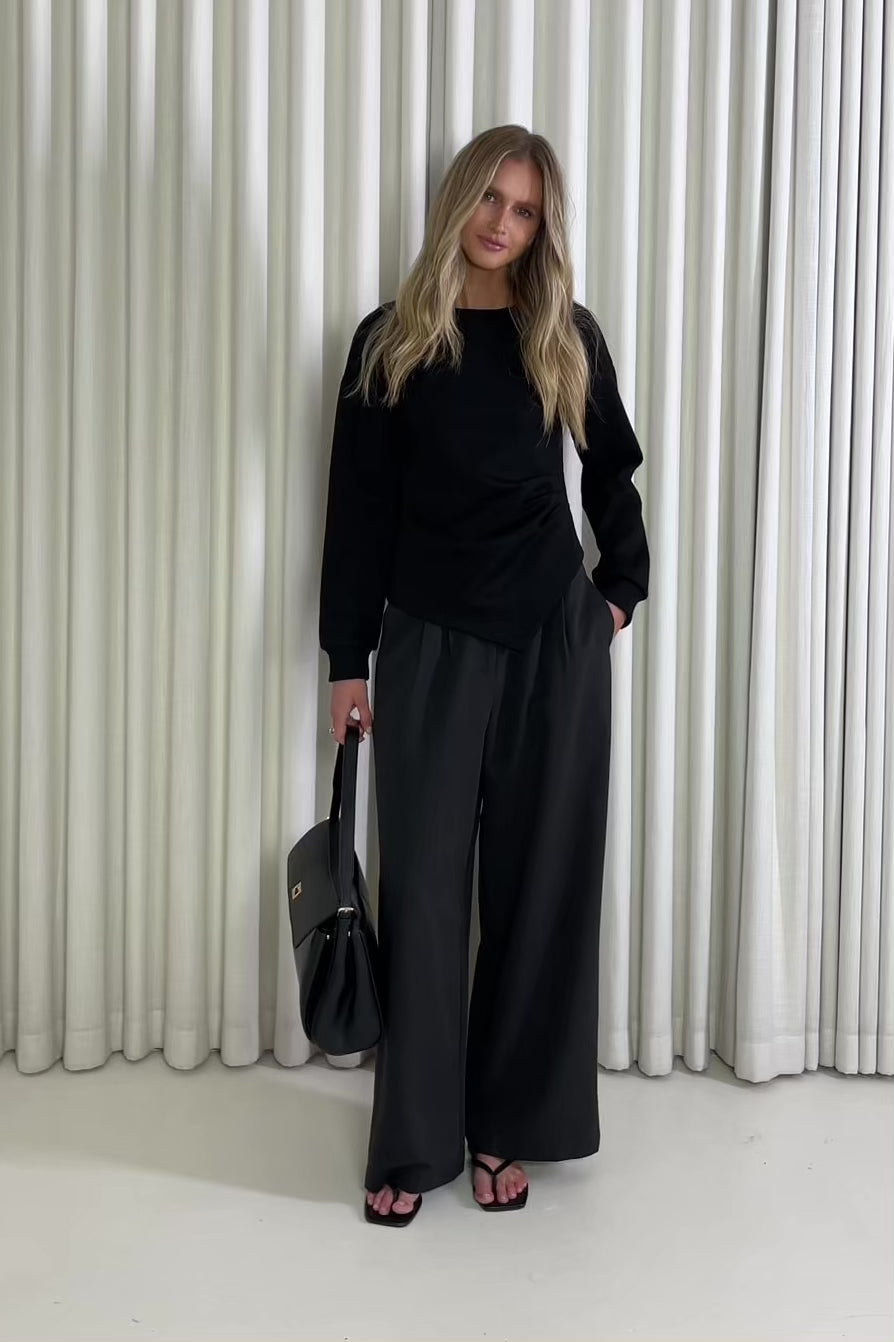 This is one of those tops you throw on when you want your outfit to feel a bit more put together without changing too much. The Clayton top has that soft, slightly draped feel with the gathered side detail, so it does enough on its own. It works for dinners, drinks, or even during the day when you want something a little nicer than your usual tee and need to be somewhere after work. Wear it with denim to keep it easy, or pair it with black pants and heels when you want it to feel more dressed up.