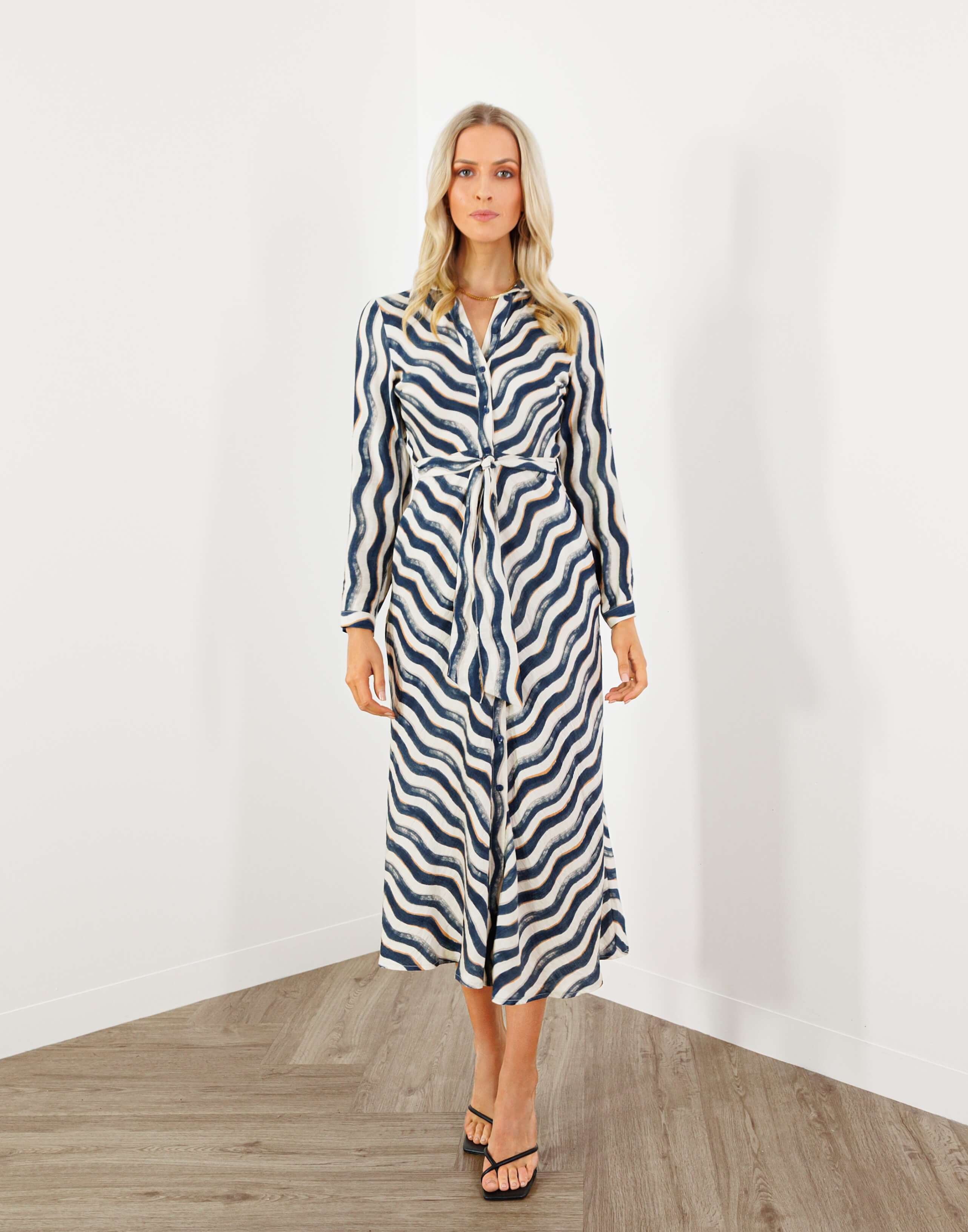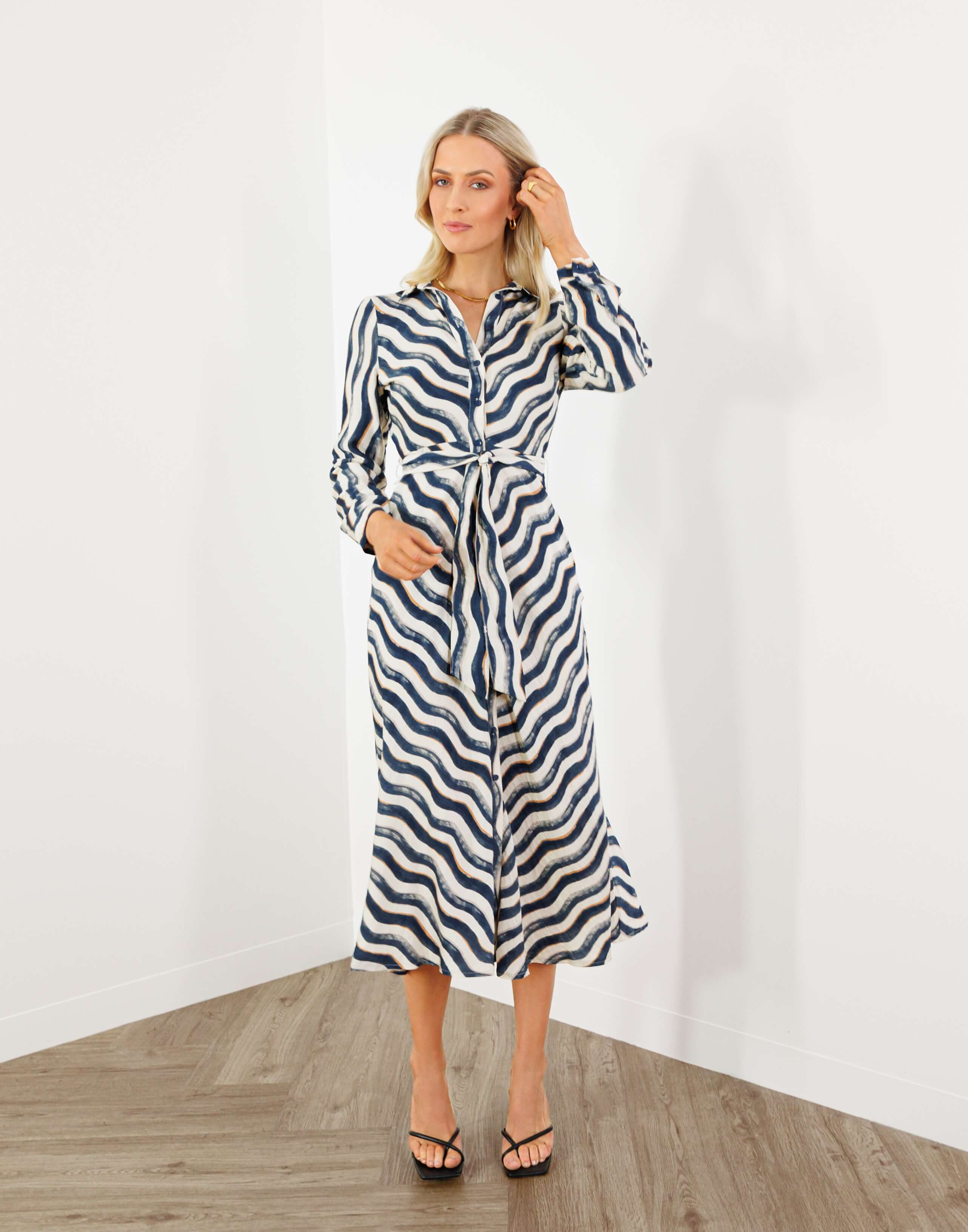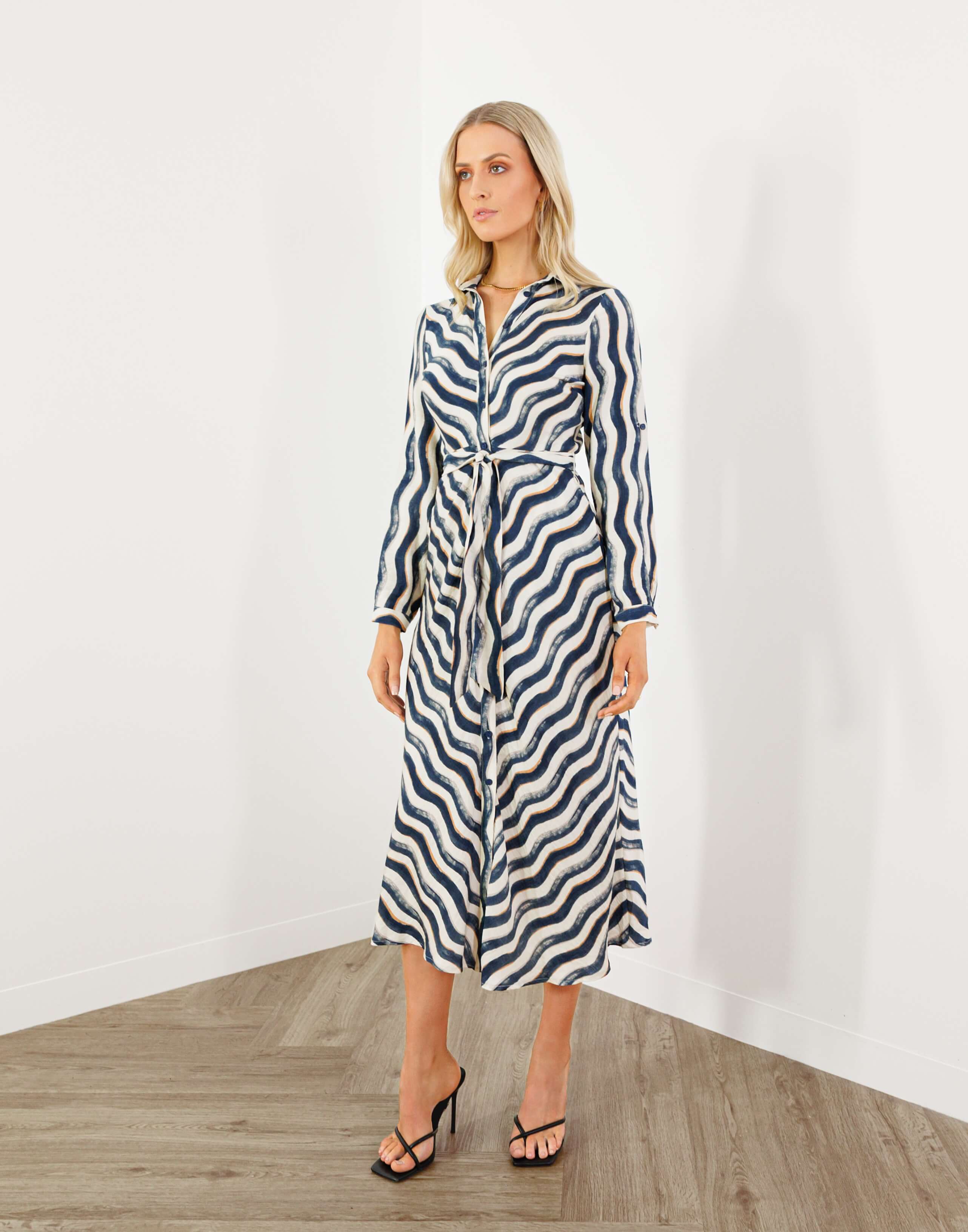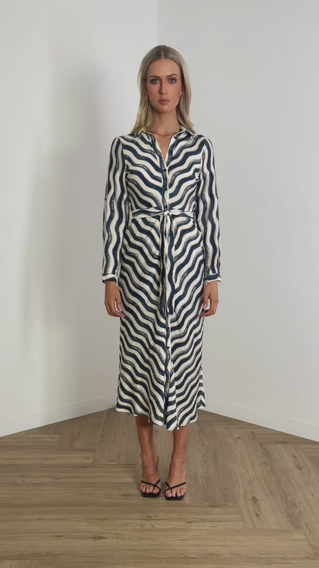 Rachel Dress - Collared Button Up Relaxed Midi Dress - Abstract