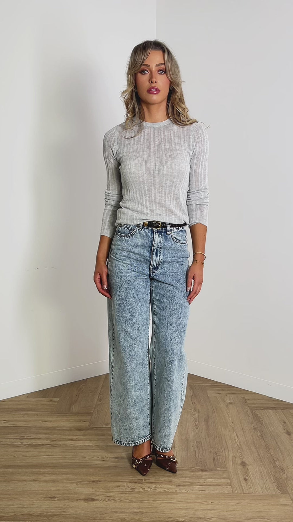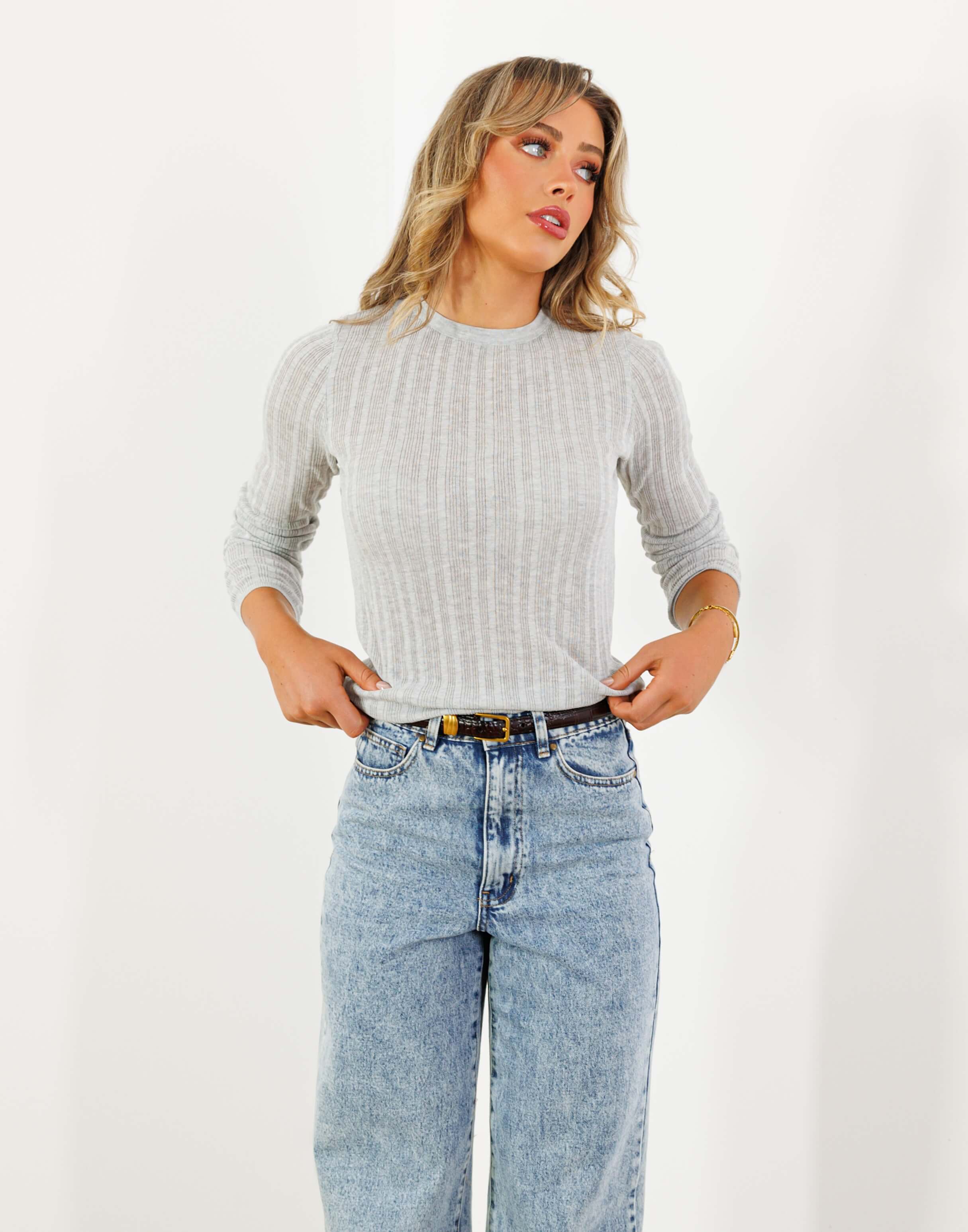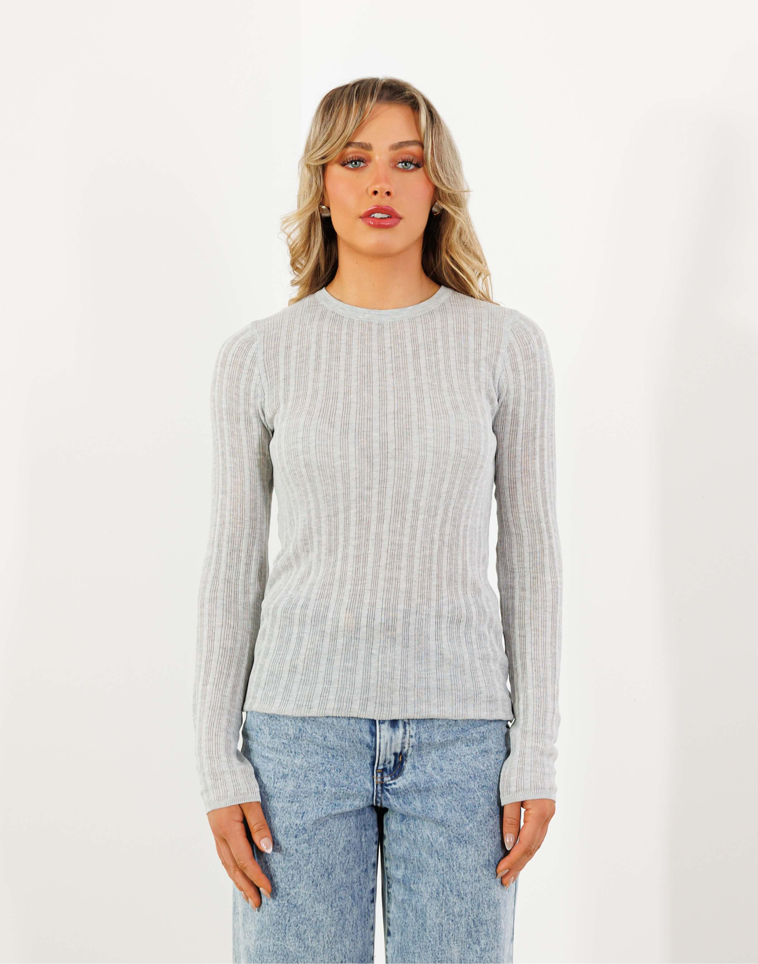 Reid Top - Fitted Long Sleeve Sheer Top - Grey