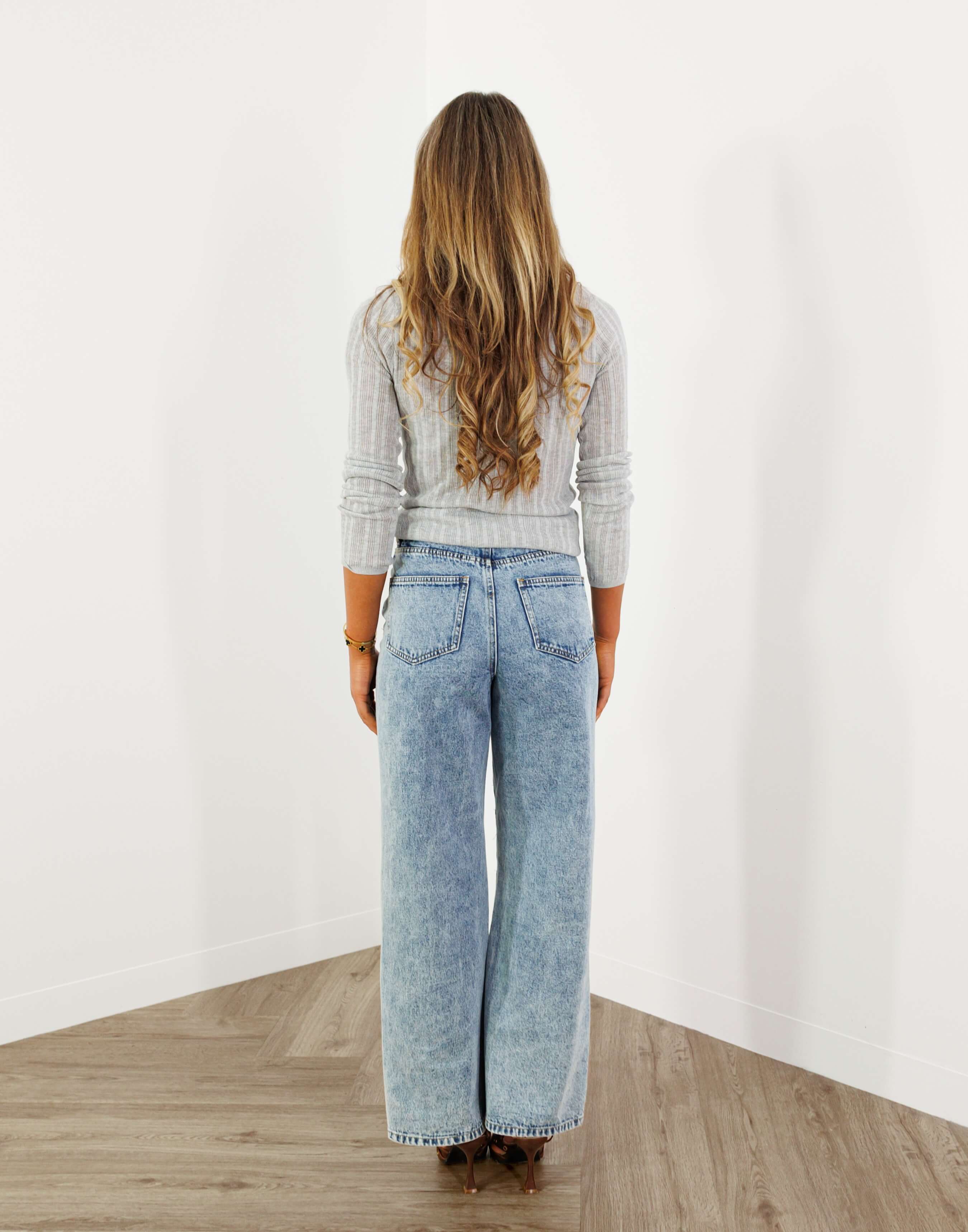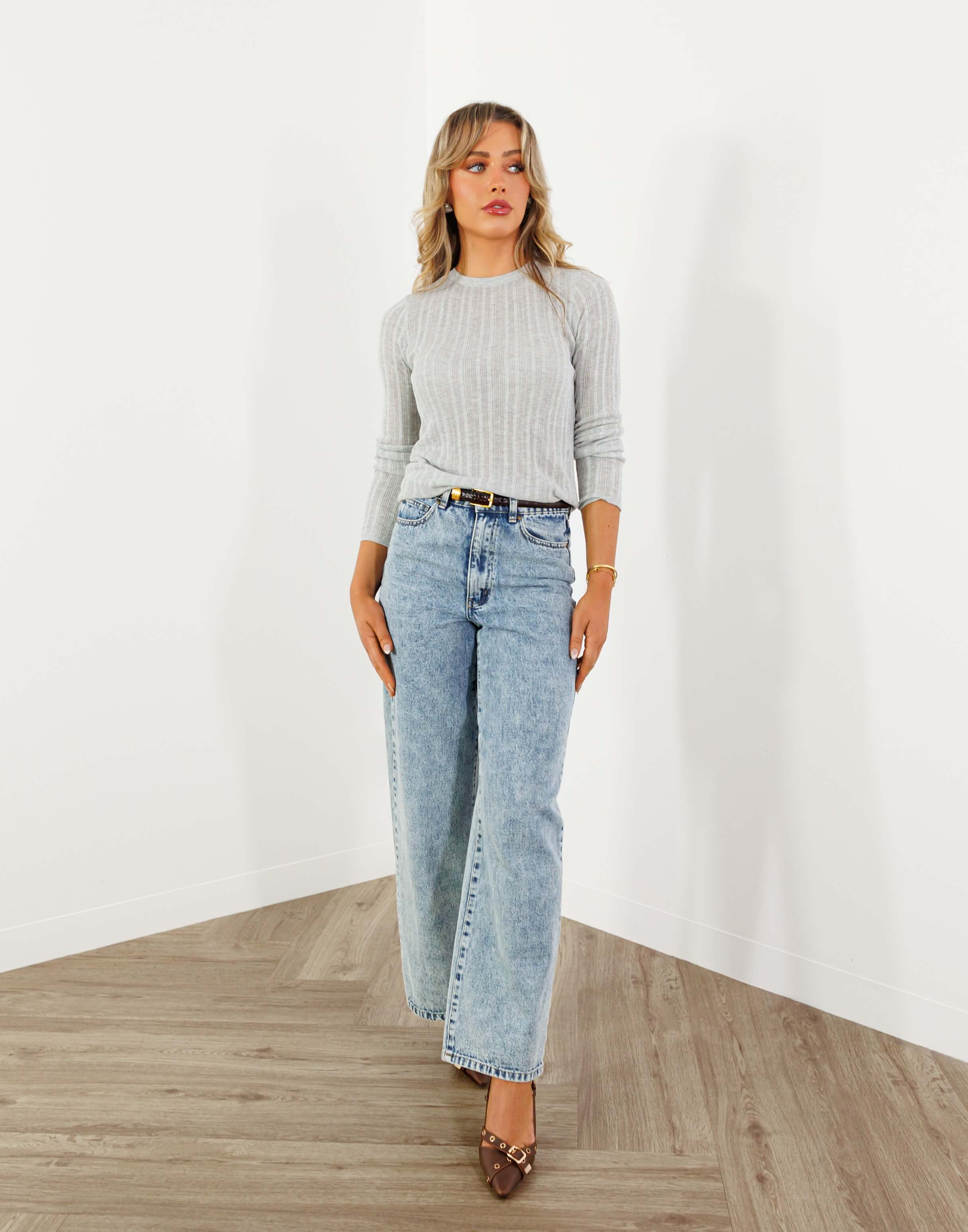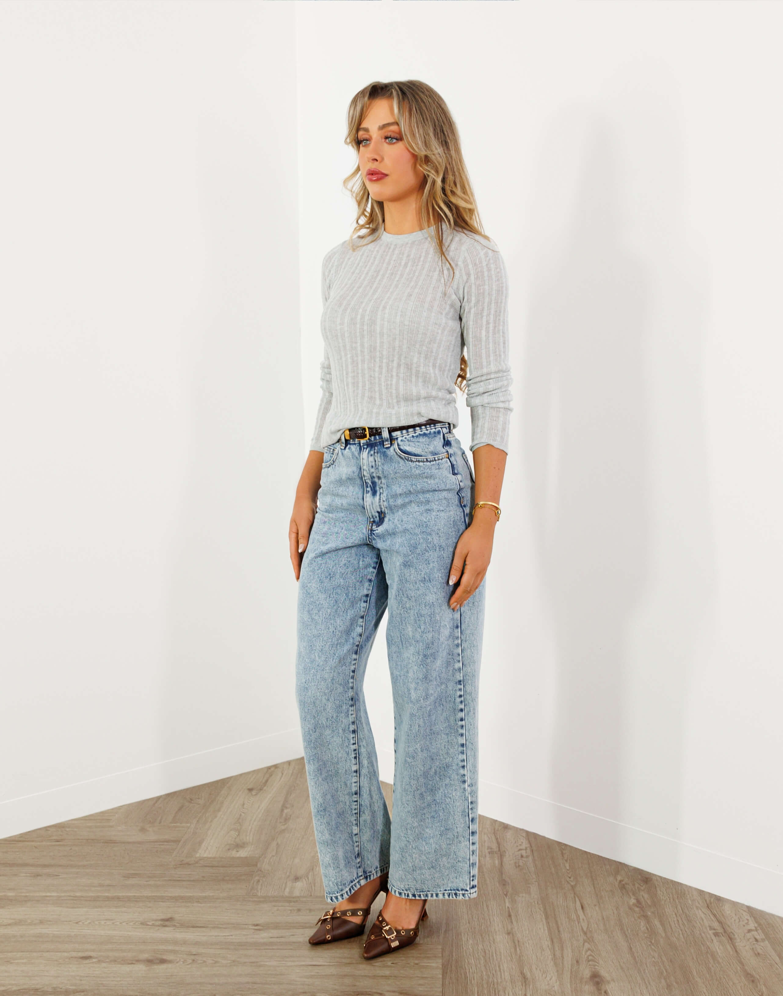Reid Top - Fitted Long Sleeve Sheer Top - Grey