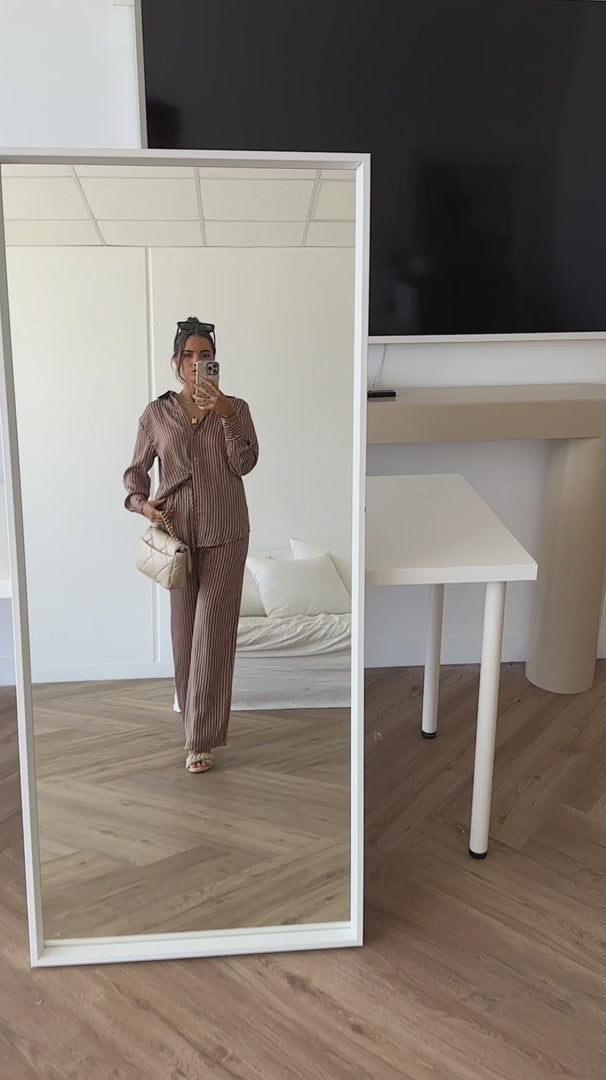 The Roberts Pants are high-waisted, loose pants with an elasticised waist.